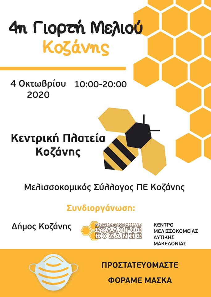 Η 3η γιορτή μελιού θα πραγματοποιηθεί την Κυριακή 04 Οκτωβρίου στην Κεντρική Πλατεία της Κοζάνης από τις 10 το πρωί έως τις 8 το βράδυ.