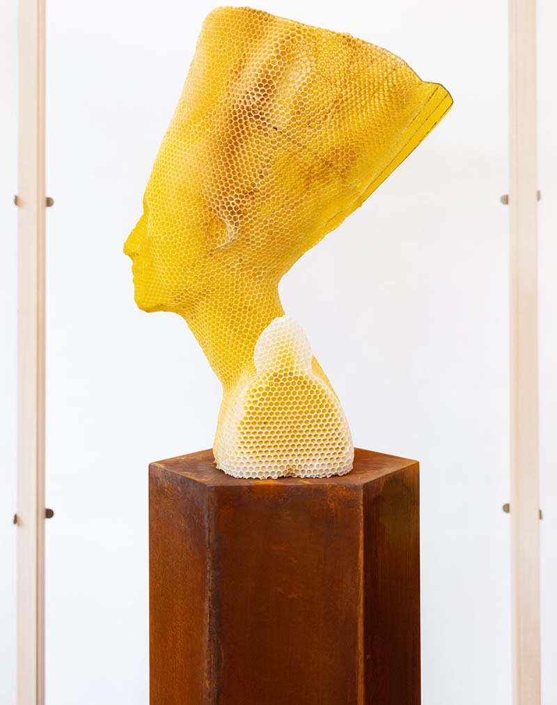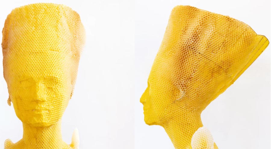 Ο Σλοβάκος καλλιτέχνης Tomáš Libertíny συνεργάστηκε με 60.000 μέλισσες και κατάφερε να δημιουργήσει μια έκδοση από κερί μέλισσας της διάσημης προτομής από την βασίλισσα της Αιγύπτου Νεφερτίτη.