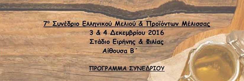 Στα πλαίσια του 8ου Φεστιβάλ Ελληνικού Μελιού & Προϊόντων Μέλισσας στο στάδιο Ειρήνης & Φιλίας, θα πραγματοποιηθεί το 7ο Μελισσοκομικό Συνέδριο στις 3 και 4 Δεκεμβρίου 2016.