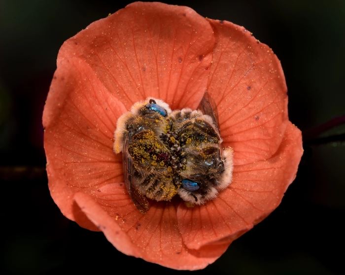 Οι μέλισσες είναι οι σημαντικότερες επικονιαστές στον κόσμο των καλλιεργειών . Στην πραγματικότητα, εκτιμάται ότι το ένα τρίτο του τροφίμου που καταναλώνουμε καθημερινά βασίζεται στην επικονίαση κυρίως από τις μέλισσες. Αλλά όσο συνηθίζουμε να βλέπουμε να εργάζονται, αυτά τα έντομα χρειάζονται επίσης ύπνο. Πρόσφατα, ο φωτογράφος της άγριας ζωής Joe Neely κατέλαβε δύο μέλισσες αγκαλιασμένες σε ένα λουλούδι και η φωτογραφία δείχνει μια όμορφη πλευρά από αυτές που σπάνια βλέπουμε.