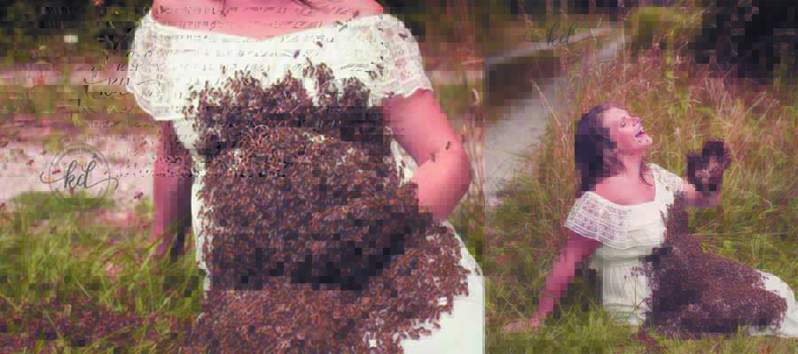 Θεωρώντας τα πουλιά και τις μέλισσες αναπόσπαστο στοιχείο της διαδικασίας αναγέννησης στη φύση, η Emily Mueller αποφάσισε ότι οπωσδήποτε αυτά τα πλάσματα θα έπρεπε να βρίσκονται σε μια φωτογραφία εγκυμοσύνης, οπότε προσκάλεσε ένα σμήνος μέλισσες στη δική της φωτογραφία.
