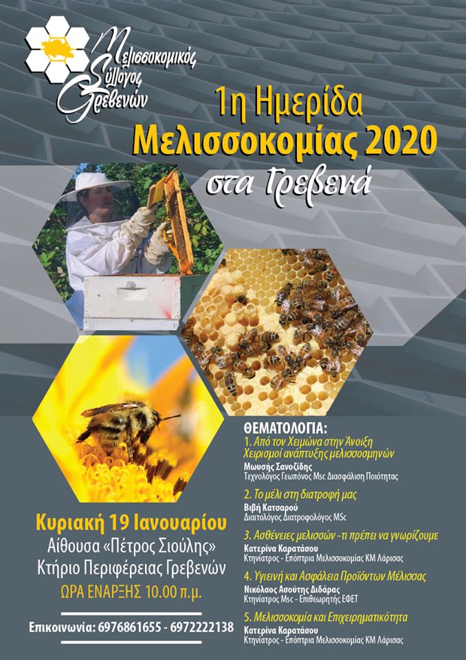 Ο Μελισσοκομικός Σύλλογος Γρεβενών διοργανώνει ημερίδα μελισσοκομίας την Κυριακή 19 Ιανουαρίου στο Κτήριο της Περιφέρειας στην Αίθουσα Πέτρος Σιούλης.