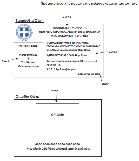 4. Εάν ο ενεργός μελισσοκόμος είναι φυσικό πρόσωπο, στη μελισσοκομική του ταυτότητα αναγράφονται τα στοιχεία ταυτοποίησης και εκτυπώνεται η φωτογραφία του ιδίου.
