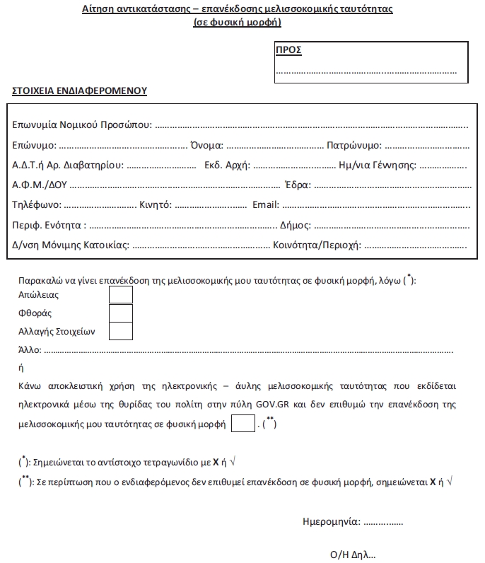Τύπος και διαδικασία έκδοσης της Ατομικής Μελισσοκομικής Ταυτότητας