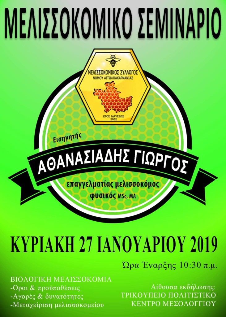 Ο Μελισσοκομικός Σύλογος Αιτωλοακαρνανίας διοργανώνει σεμινάριο με θέμα την βιολογική μελισσοκομία στο Τρικούπειο πολιτιστικό κέντρο Μεσολογγίου.