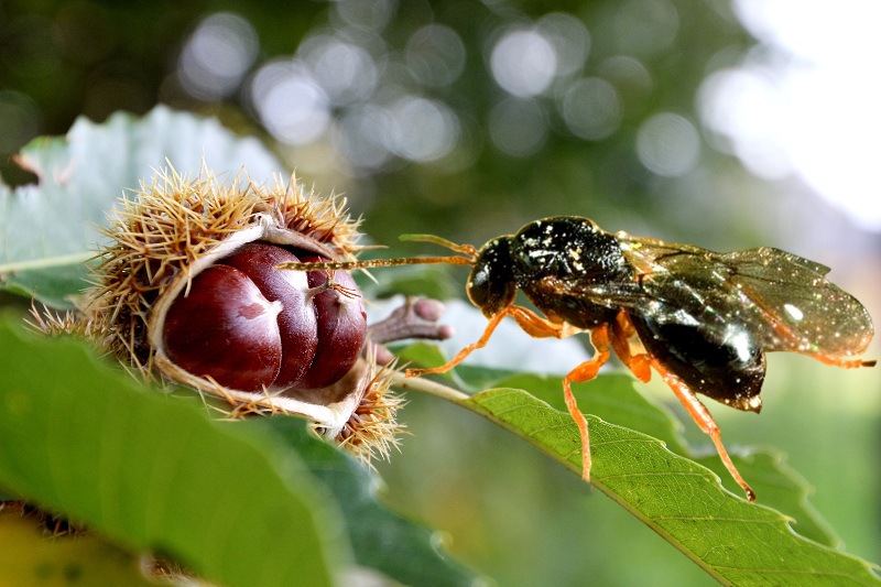 Το έντομο Dryocosmus kuriphilus (σφήκα της καστανιάς) αν και είναι ιθαγενές έντομο της Κίνας έχει εισβάλει και εξαπλωθεί σε πολλές περιοχές του πλανήτη.