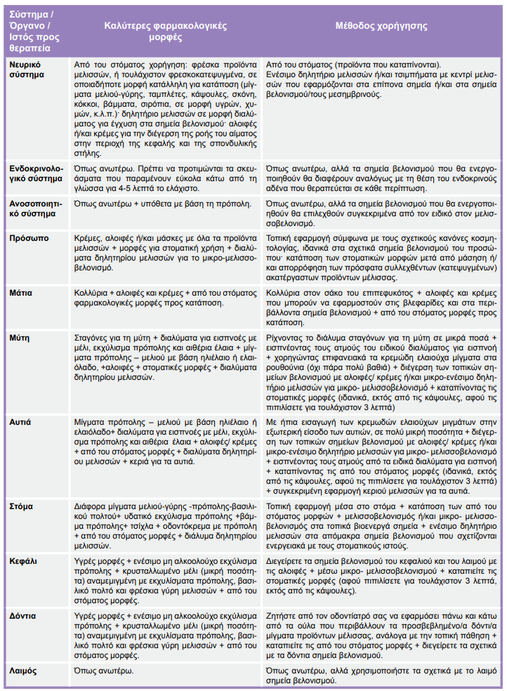 Όμως, οποιοσδήποτε μπορεί να χρησιμοποιήσει αλοιφές με δηλητήριο μελισσών και πρόπολη, αλλά χρειάζεται να ακολουθούνται οι οδηγίες χρήσης.