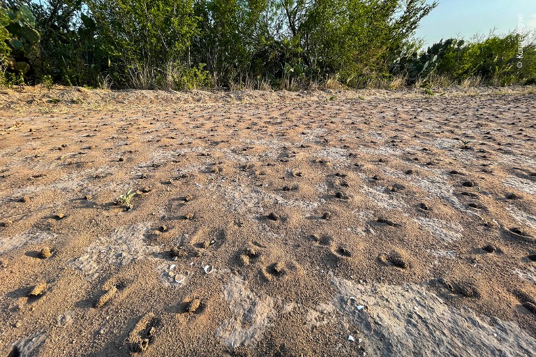 Η Karine βρισκόταν σε μια συνηθισμένη διαδρομή γύρω από ένα ράντσο στο Τέξας των ΗΠΑ, όταν κάτι τράβηξε το μάτι της. Αφηγείται πώς «το έδαφος γέμισε ξαφνικά με εκατοντάδες πυργίσκους σαν ηφαίστειο» και ότι «η άμεση σκέψη της ήταν «τι είδους μυρμήγκια είναι αυτά;» Ρίχνοντας μια πιο προσεκτική ματιά, η Karine σύντομα ανακάλυψε ότι τα «μυρμήγκια» ήταν μέλισσες. Το είδος που συνάντησε ανήκει στο γένος Diadasia, που θεωρούνται μοναχικές μέλισσες. Αυτό σημαίνει ότι, σε αντίθεση με τις μέλισσες για παράδειγμα, δεν χτίζουν κυψέλες και ζουν ως συλλογικότητα.